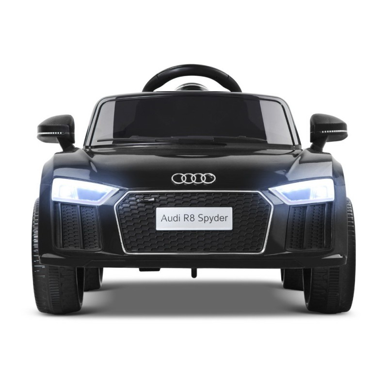 Introduce your child to the thrill of driving with the Kid's Ride On Car, Audi R8 Rigo Licensed Sports Electric Toy Car in sleek Midnight Black. This officially licensed Audi R8 Spyder delivers a realistic driving experience with a steering wheel, acceleration pedal, and forward/reverse controls. Equipped with a safety seat belt and a remote control for parental guidance, it ensures a safe adventure for your little driver. Built-in music, MP3 input, and flashing lights promise endless fun. Ideal for young car enthusiasts, it's a gift that combines excitement with safety. Charge the battery regularly to maintain performance and longevity.
