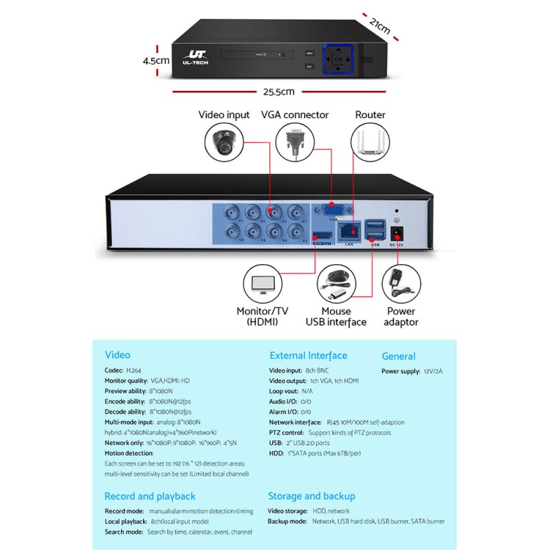 - Video input: 8ch BNC