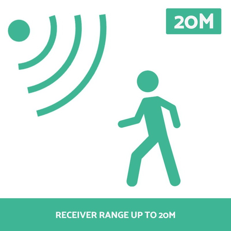 - Receiver range: =20m (range may reduce by 30% in bad weather)