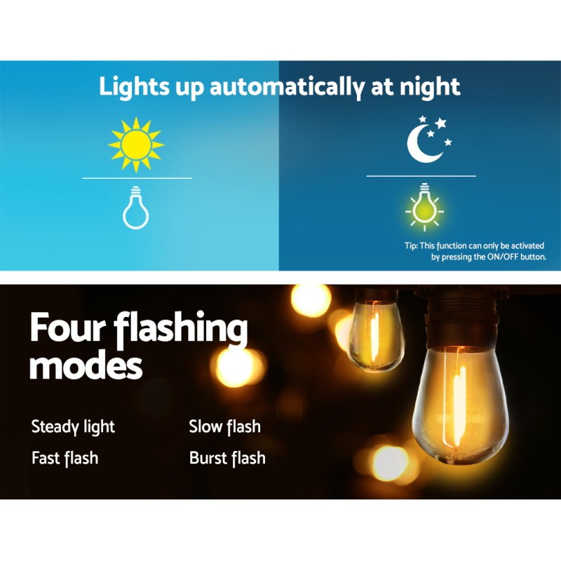 Illuminate your outdoor spaces with Unbranded's 17m Solar Festoon Lights, perfect for any occasion. These LED string lights deliver a bright yet mellow glow, creating a warm and inviting ambience. Powered by a high-efficiency solar panel with a superior energy conversion rate, they operate at no cost with an auto on/off light sensor for effortless use. Choose from four lighting modes—steady, slow flash, fast flash, or burst flash—to suit your mood. With a durable 20,000-hour lifespan and low voltage consumption, these IP44 waterproof lights are ideal for both indoor and outdoor use, even on cloudy days with optional USB recharging.