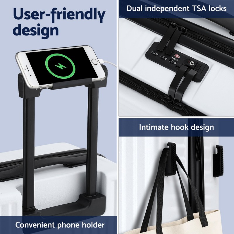 Travel effortlessly with the Wanderlite 20" Luggage Suitcase, designed for style and convenience. This sleek carry-on features a quick-access front pocket for your essentials and a padded laptop compartment accommodating devices up to 15.6". Crafted from premium, lightweight ABS with a durable matte finish, it glides smoothly on ultra-smooth 360° spinner wheels. Dual TSA-approved locks ensure your belongings are secure, while the spacious interior with elastic straps and mesh pockets offers perfect organisation. Ideal for business trips or weekend escapes, the Wanderlite Suitcase is your ultimate travel companion.