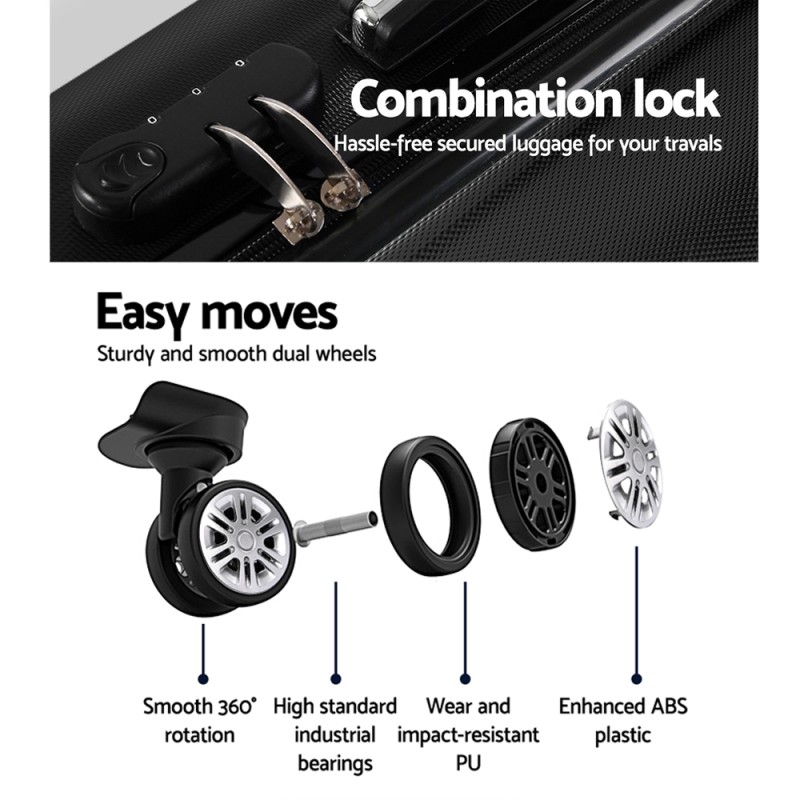Travel with confidence using the Wanderlite 20" Luggage Trolley. Designed for the modern traveller, this sleek black suitcase combines style with functionality. Its super lightweight ABS hard shell ensures durability, while the smooth 360° dual wheels and aluminium pull rod offer effortless manoeuvrability. Keep your belongings secure with the built-in code lock. With a 40L capacity, it's perfect for short trips. Start your journey stress-free with Wanderlite!