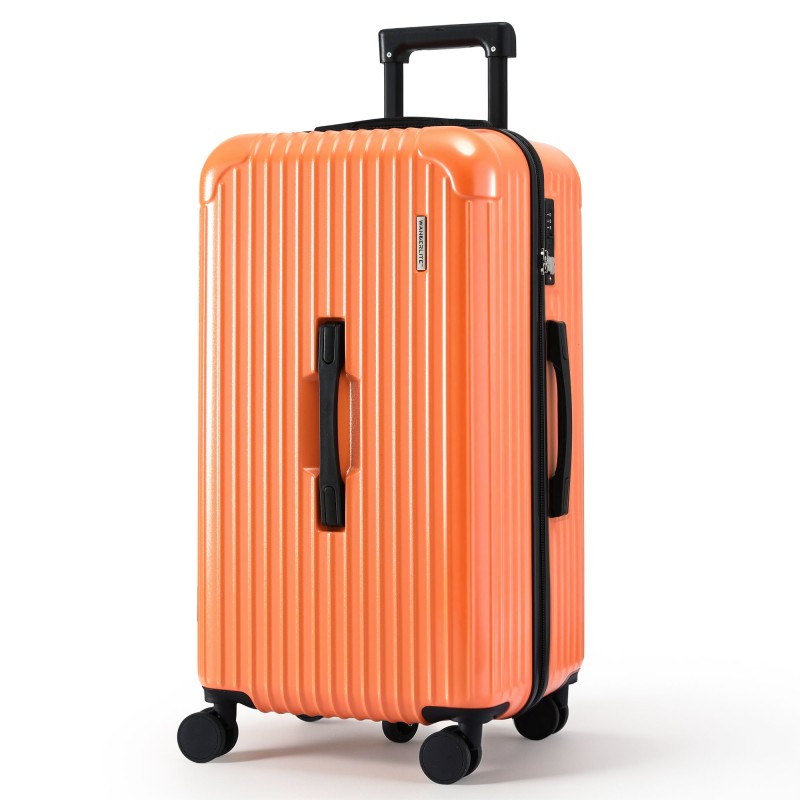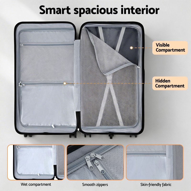 Keep your belongings safe and organised with the Wanderlite 28" Trunk Luggage. This 28" ABS suitcase offers a 3/7 split compartment, 90L capacity and built-in USB and Type C ports so you can charge devices on the move. Smooth 360° dual spinner wheels and an aluminium telescopic handle make airport transfers effortless while a TSA lock and reinforced shell protect your gear. A hidden wet compartment and multiple mesh pockets keep items separated and easy to access.