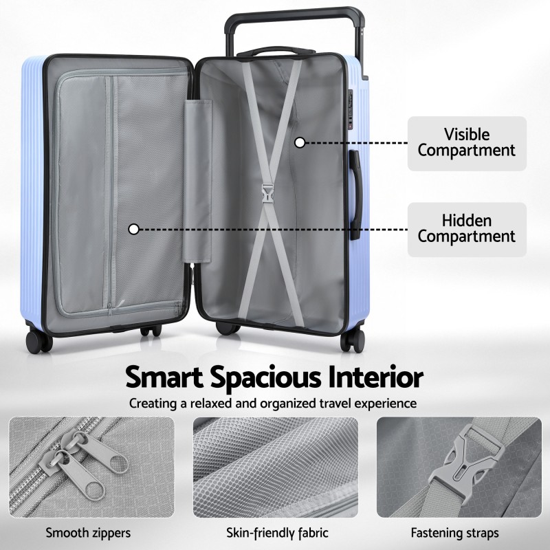 Keep your luggage protected and organised with the Wanderlite 28" wide handle suitcase in light blue. Built from lightweight durable polycarbonate with rounded corners it offers a larger internal capacity and smooth 360° silent shock absorbent wheels for effortless travel. The wider balanced handle gives easier packing and handling while a TSA approved lock and multiple interior organisers keep belongings secure and accessible on domestic and international trips.