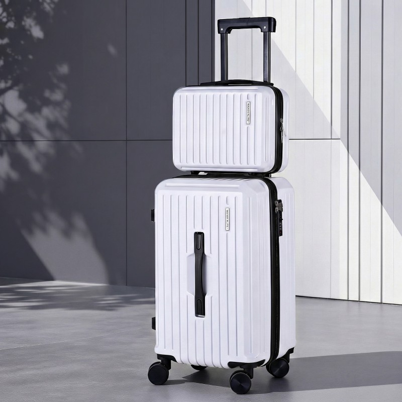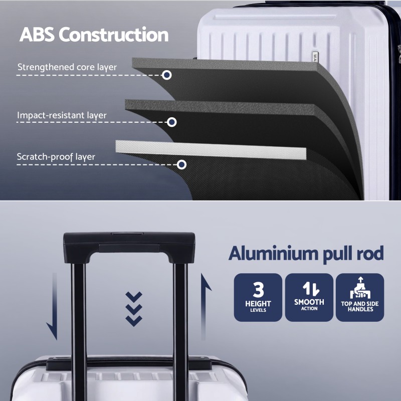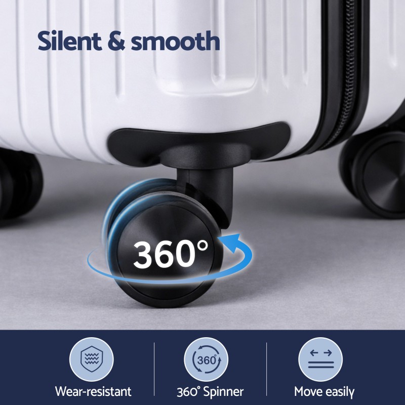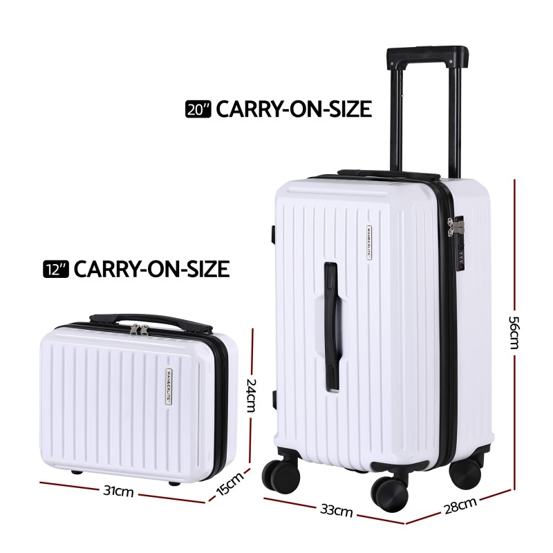 The Wanderlite 2pcs Trunk Luggage Set (12" & 20", White) redefines travel with style and innovation. Featuring a smart 3/7 split compartment, convenient phone holder, and discreet wet pocket, packing becomes effortless and organised. Enjoy smooth manoeuvring with reinforced 360° spinner wheels, while your belongings stay secure inside the durable ABS shell with TSA-approved lock. Designed for convenience with top and side handles, retractable aluminium pull rod, and spacious, well-organised interior—travel has never been easier!