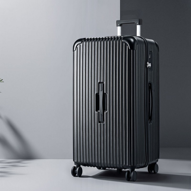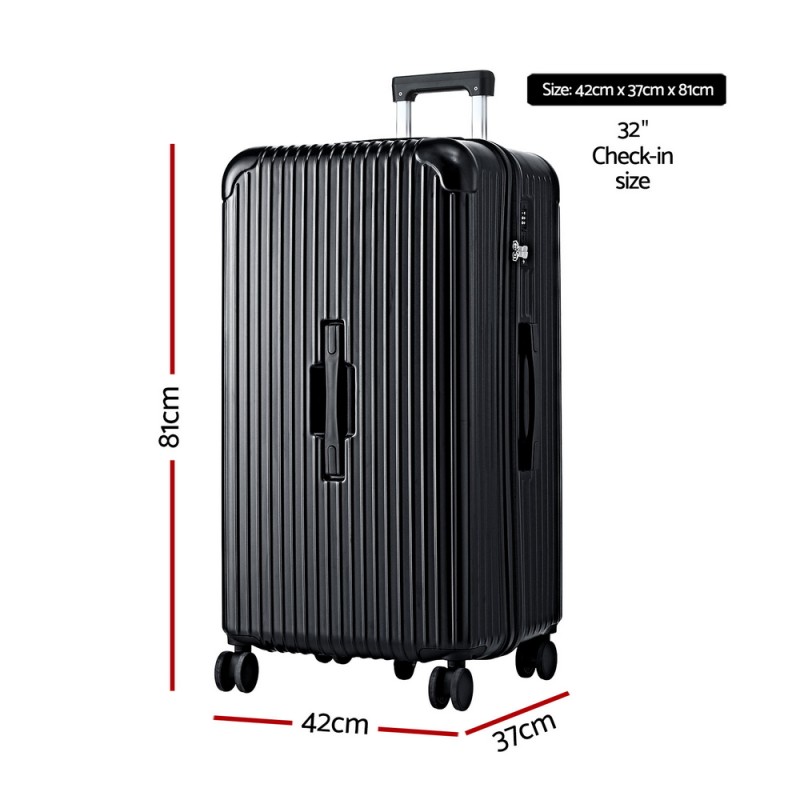 Travel smarter with the Wanderlite 32" Trunk Luggage Suitcase, designed to make your journey seamless and stylish. This sleek black luggage combines practicality with innovation, featuring a smart 3/7 split compartment for organised packing and built-in USB and Type-C ports to keep your devices charged. Glide effortlessly on reinforced 360° dual spinner wheels, and rest assured with the TSA-approved lock and durable ABS shell. A hidden wet compartment keeps your belongings fresh, while the spacious interior with elastic cross straps and mesh pockets maximises storage. Start your adventure with Wanderlite today!