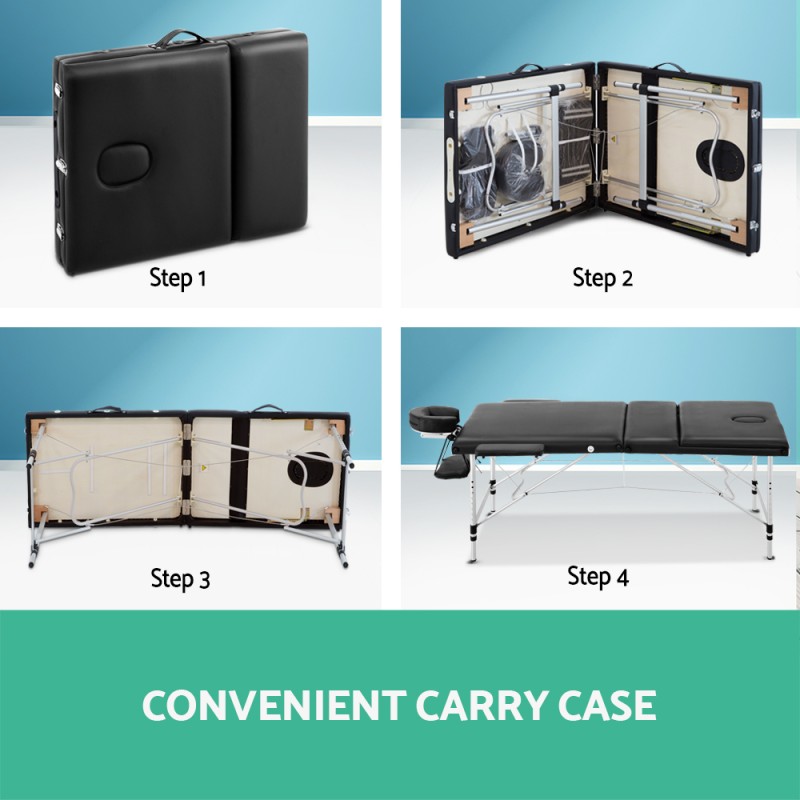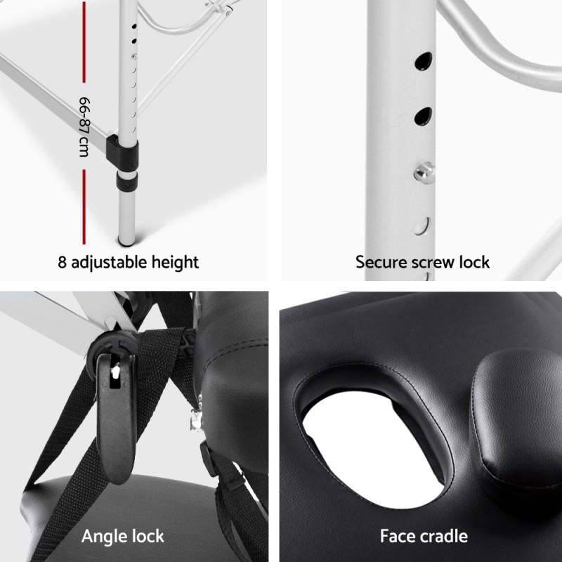 Experience the ultimate in portable comfort with the Wanderlite Zenses Massage Table. Crafted with a reinforced "w" shaped aluminium frame, this 3-fold beauty bed offers unmatched sturdiness and supports up to 250kg. Its high-density foam and 8 adjustable heights ensure client comfort and therapist convenience. Lightweight at just 17kg, it includes a removable face cradle, armrests, and a FREE carry bag and disposable cover set. Perfect for professional and home use, rain or shine.