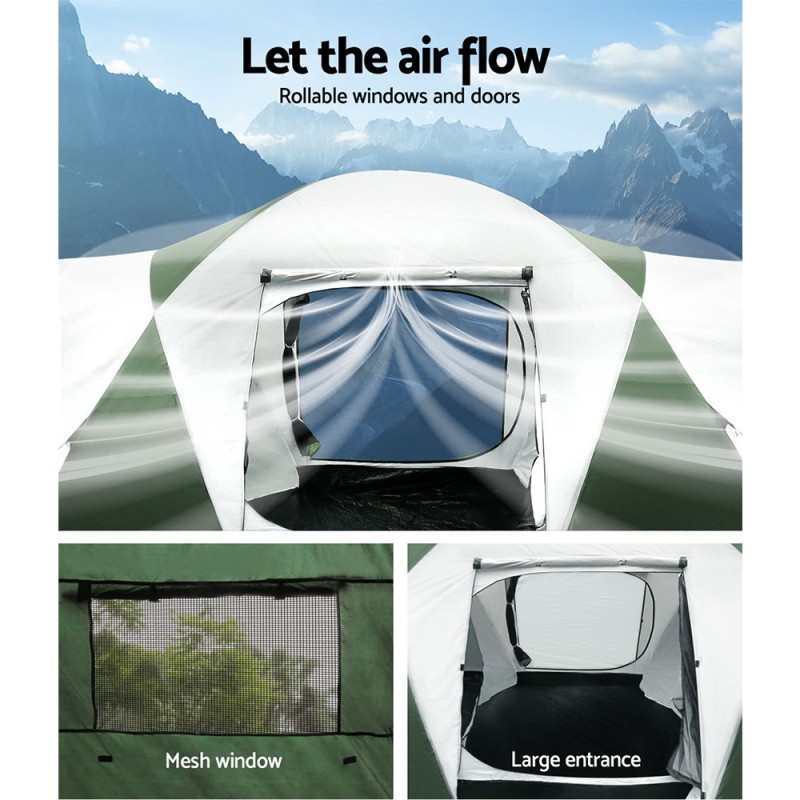 Embark on your next camping adventure with the Weisshorn Family Camping Tent, designed for up to 12 people. This spacious tent features two private sleeping rooms and a large central living area, offering luxurious comfort in the great outdoors. Made from heavy-duty, UV-resistant 190T 3000mm PU, it ensures superior water resistance and durability. Enjoy ample ventilation with mesh windows, and easily access the tent through oversized zipper doors. With organiser pockets and an entrance shade awning, this tent enhances your camping experience with convenience and protection.