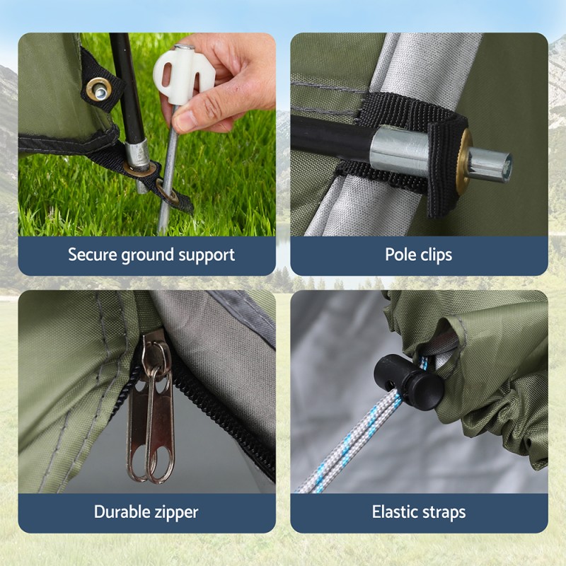 Transform your vehicle into a cosy, spacious retreat with the Weisshorn Camping Tent. Designed for seamless integration with your car, SUV, or hatchback, this versatile tent expands your living space, offering easy access to your gear. Made from water-resistant Oxford fabric with UV protection, it ensures you stay comfortable in any weather. Sturdy steel poles provide a stable setup, while double-sided zippers and rollable windows enhance airflow. Thoughtfully equipped with built-in storage pockets, it keeps your essentials organised. Ideal for road trips or outdoor adventures, experience freedom and comfort with Weisshorn.