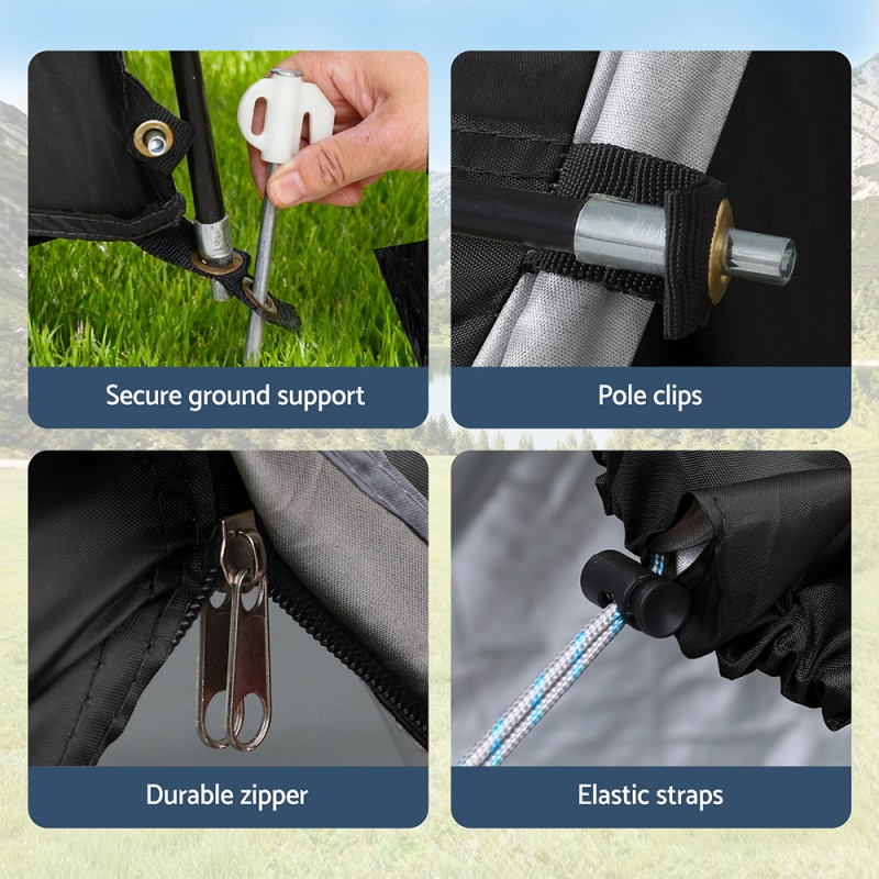 Elevate your outdoor adventures with the Weisshorn Camping Tent. Designed for ultimate convenience, this tent seamlessly attaches to your vehicle, expanding your living space and providing quick access to gear. Made from water-resistant Oxford fabric with UV protection, it offers shelter from the elements, while sturdy poles ensure a stable setup. Double-sided zippers allow easy entry and ventilation, and built-in storage pockets keep essentials organised. Ideal for road trips, it comfortably sleeps 3. Enjoy the great outdoors with added comfort and freedom with the Weisshorn Car Camping Tent.